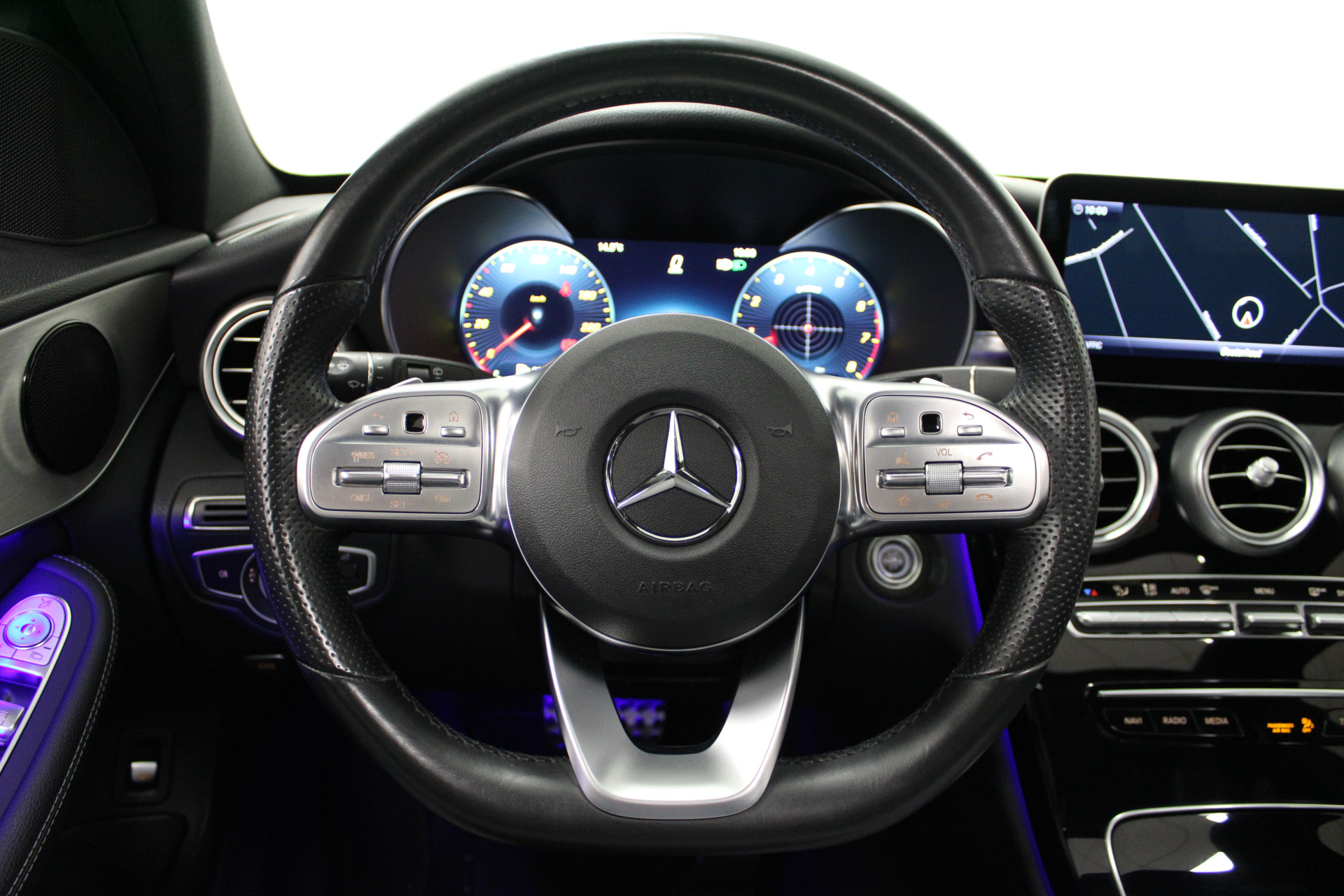 Neem plaats in de cockpit, start de motor en voel het vermogen. Met deze sportieve Mercedes-Benz C-klasse Estate hebt u altijd de controle. Met de AMG-styling trekt u op een positieve manier de aandacht. De krachtige benzinemotor van deze auto is gekoppeld aan een automatische transmissie. Met het lederen interieur ervaart u direct het gevoel van luxe en comfort. Bestuurder en bijrijder krijgen een warm welkom: deze Mercedes-Benz C-klasse Estate is voorzien van verwarmbare voorstoelen. De sportstoelen geven u veel zitsteun. Van binnen lijkt het allemaal uitermate ruim dankzij de vrije inval van daglicht via het elektrisch bediende glazen panoramadak. De achterklep opent automatisch met een druk op de knop. Handig als u met volle handen staat. De koplampen met matrix LED-verlichting geven daglichtkwaliteit zonder tegenliggers te hinderen. Verder is de Mercedes-Benz uitgerust met: 18 inch lichtmetalen velgen, AMG-styling, sportonderstel, warmtewerend glas, in delen neerklapbare achterbank en LED-achterlichten.